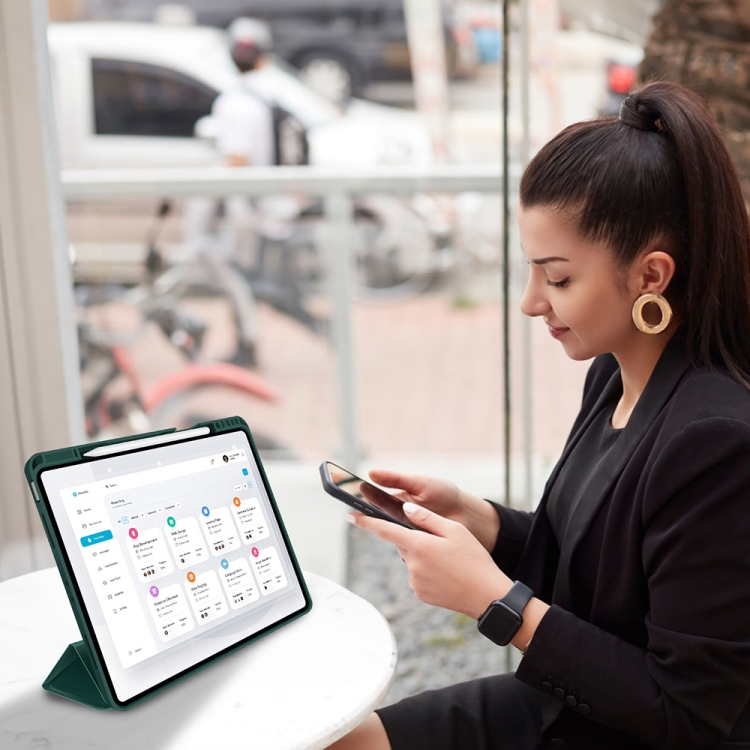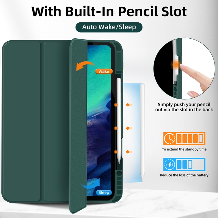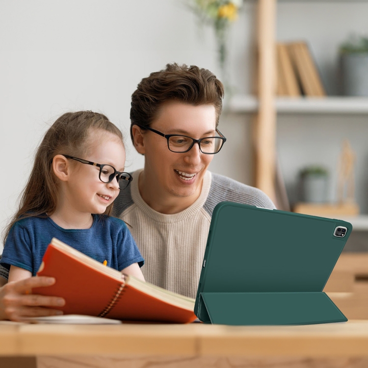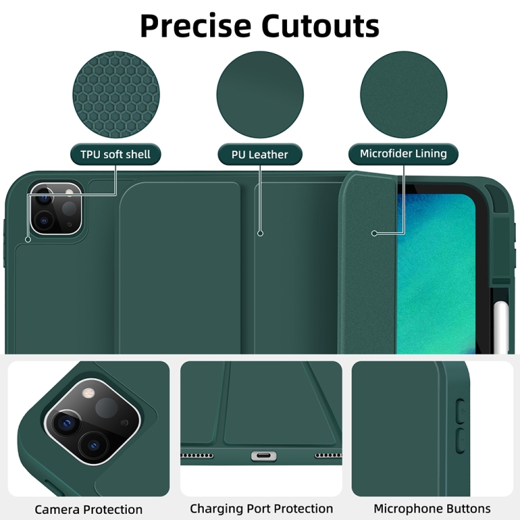 Funda para Tableta iPad Pro 11 2022/2021/2020 Cuero Inteligente TPU 3 Pliegues Ranura Bolígrafo (Verde Oscuro)
