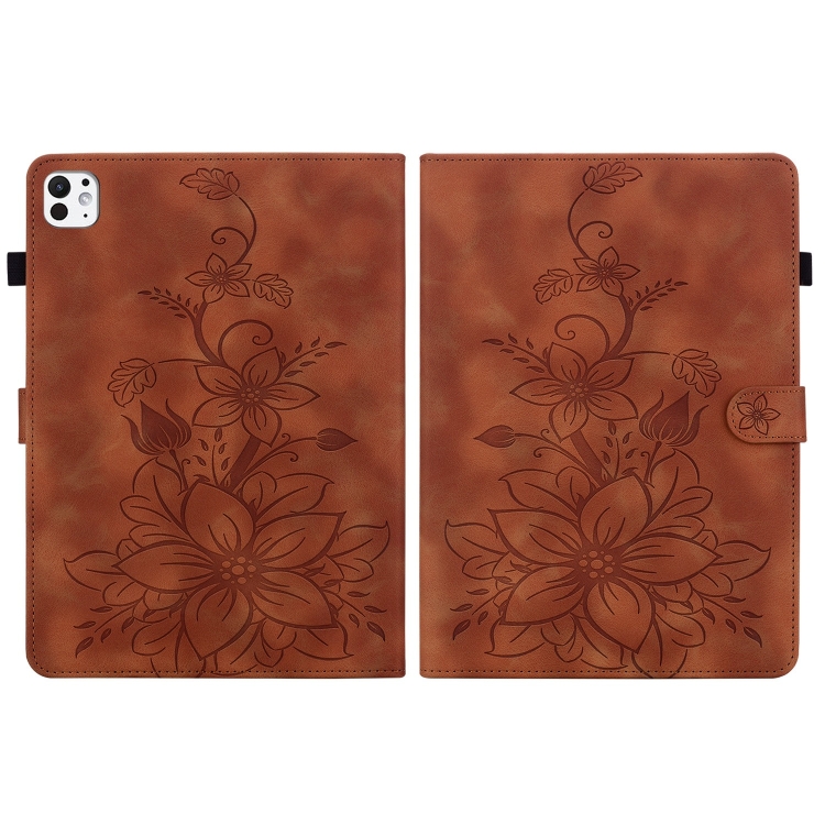Funda Inteligente Cuero con Relieve Lily para iPad Pro 11 (2024) (Marrón)