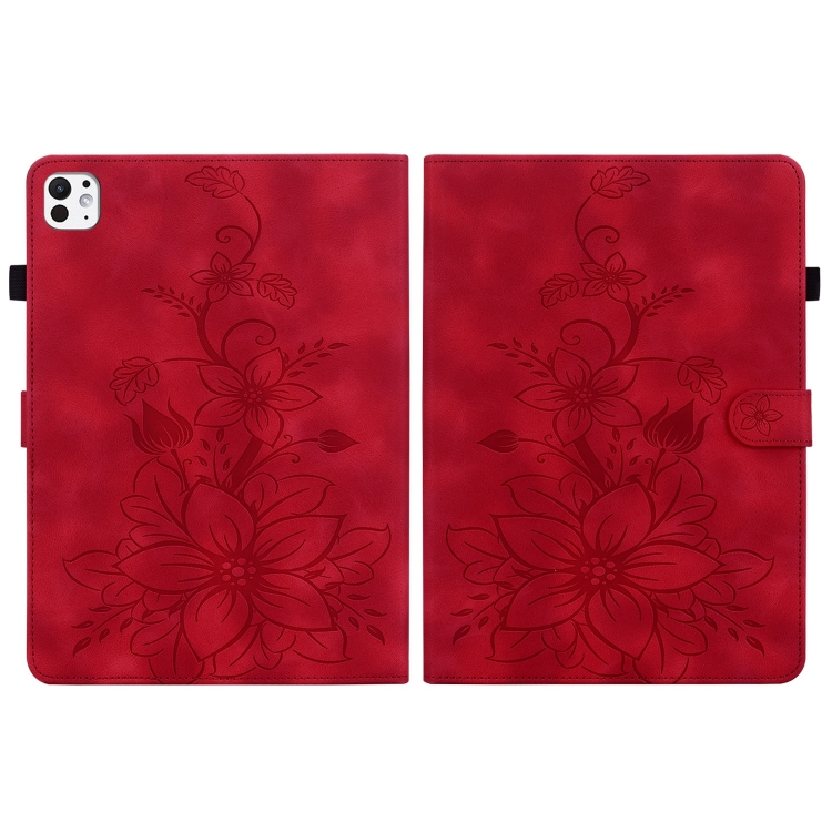 Funda inteligente Cuero con Relieve Lily para iPad Pro 11 (2024) (Roja)