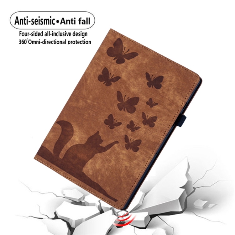 Funda para Tableta iPad Pro 12.9 Apple 2022/2021/2020 Cuero Estampado Gato Mariposa (Marrón)