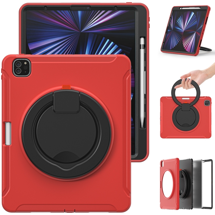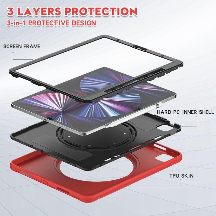 Funda Protectora para Tableta iPad Pro 12.9 2022/2021 TPU + PC Rotación 360° Mango Plegable (Rojo)
