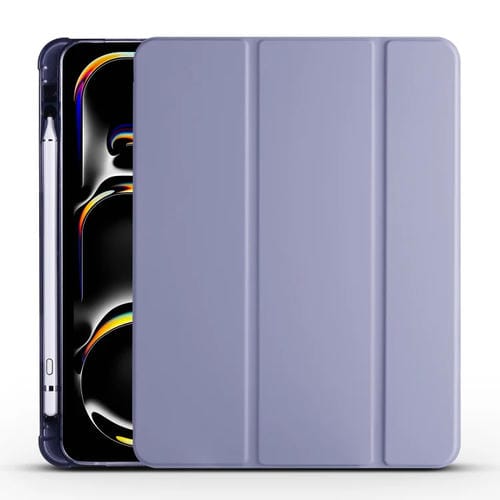 Funda para Tableta iPad Pro 13 2024 Cuero TPU 3 Pliegues con Ranura para Bolígrafo (Púrpura Lavanda)