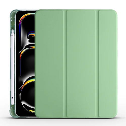 Pour iPad Pro 13 2024 Étui pour tablette intelligente en cuir TPU à 3 volets avec fente pour stylo (vert matcha)