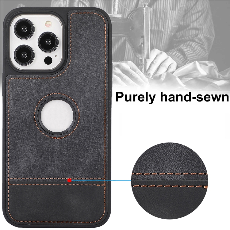 Funda para iPhone 11 Empalme Costura Caja de Teléfono de PU con Recorte Hueco (Negro)
