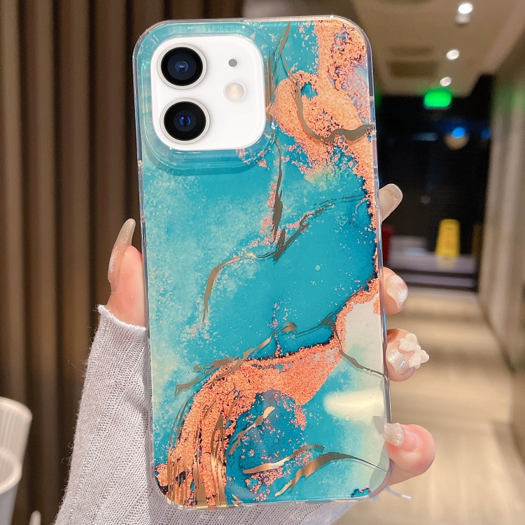 Estuche de teléfono para iPhone 11 Mármol Esmaltado Color (Dorado Verde)