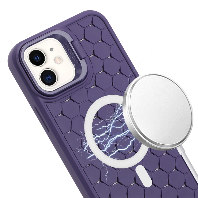 Estuche para Teléfono Magsafe iPhone 11 con Soporte para Lente Radiante en Panal con Cordón (Púrpura)
