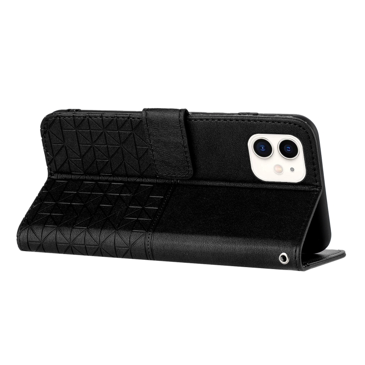 Funda para iPhone 11 Cuero Textura Rómbica con Cordón (Negro)