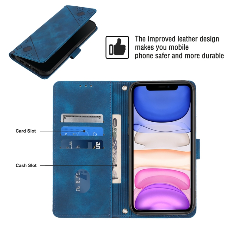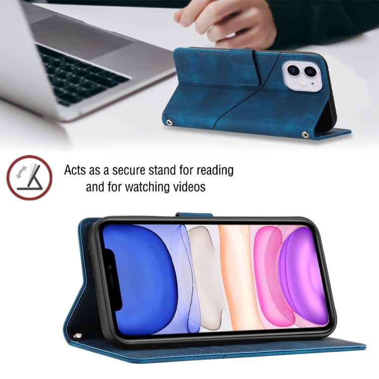 Funda de teléfono iPhone 11 Cuero en relieve con tacto de piel (Azul)