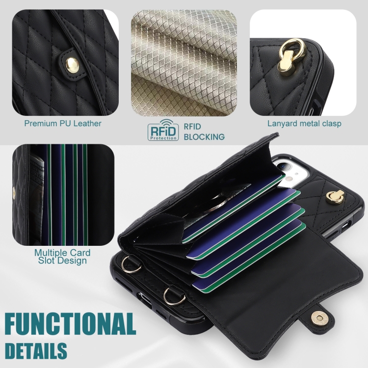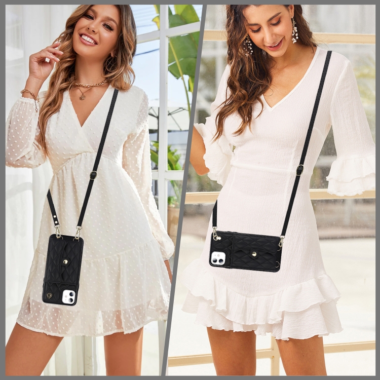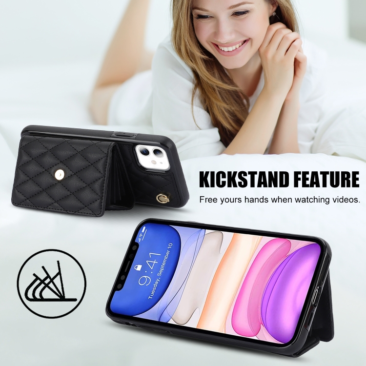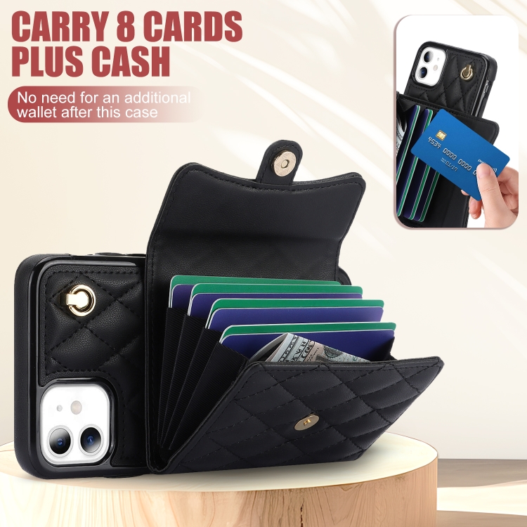 Funda para Teléfono iPhone 11 Cuero con Billetera Horizontal Romboidal Cruzada (Negro)