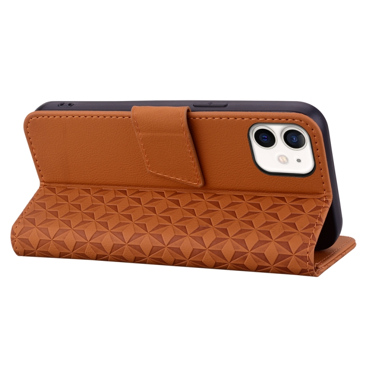 Funda para Teléfono iPhone 11 Cuero Hebilla de Diamante Empresarial Cordón (Marrón)