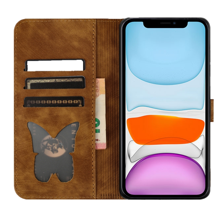 Funda para Teléfono iPhone 11 Cuero con Tapa y Estampado de Gato Mariposa (Marrón)