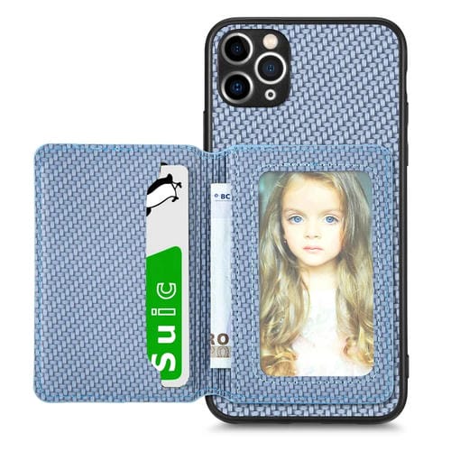 Caja de Teléfono para iPhone 11 Pro con Bolsa de Tarjeta Magnética Fibra de Carbono (Azul)