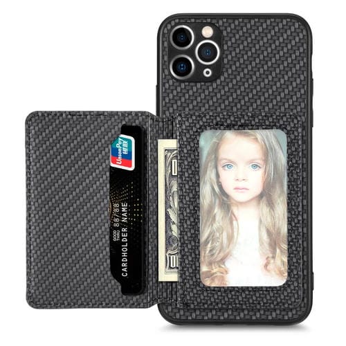 Caja de Teléfono para iPhone 11 Pro con Bolsa de Tarjeta Magnética Fibra de Carbono (Negro)