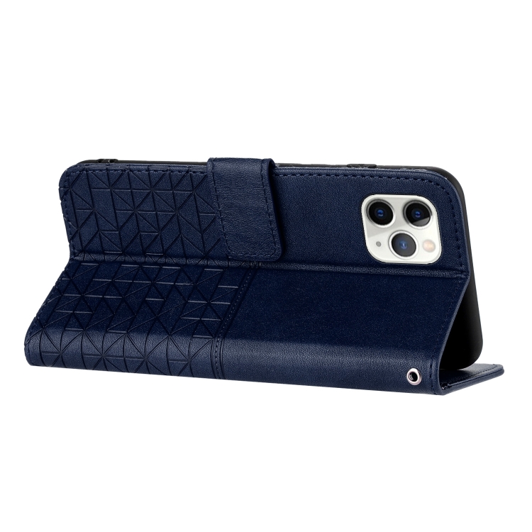 Funda de Cuero para iPhone 11 Pro con Textura Rómbica y Cordón (Azul)