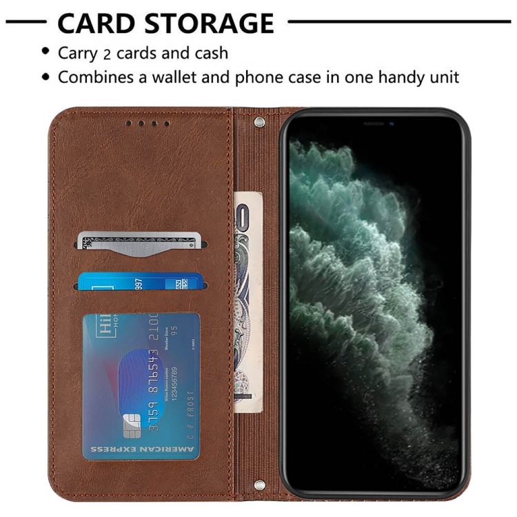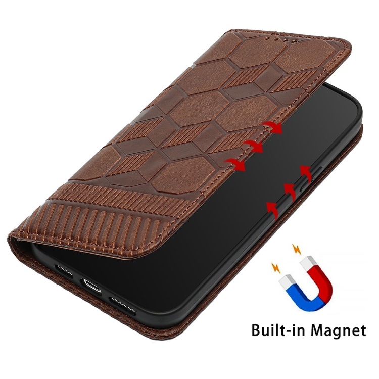 Funda de Teléfono para iPhone 11 Pro con Tapa de Cuero Magnético y Textura de Fútbol (Marrón)