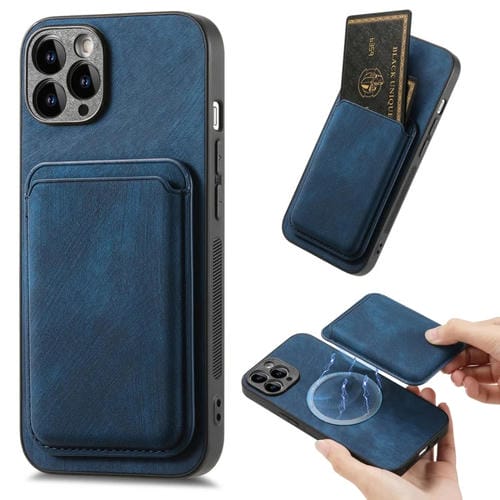 Funda de Teléfono para iPhone 11 Pro Magnética con Bolso de Tarjeta de Cuero Retro (Azul)