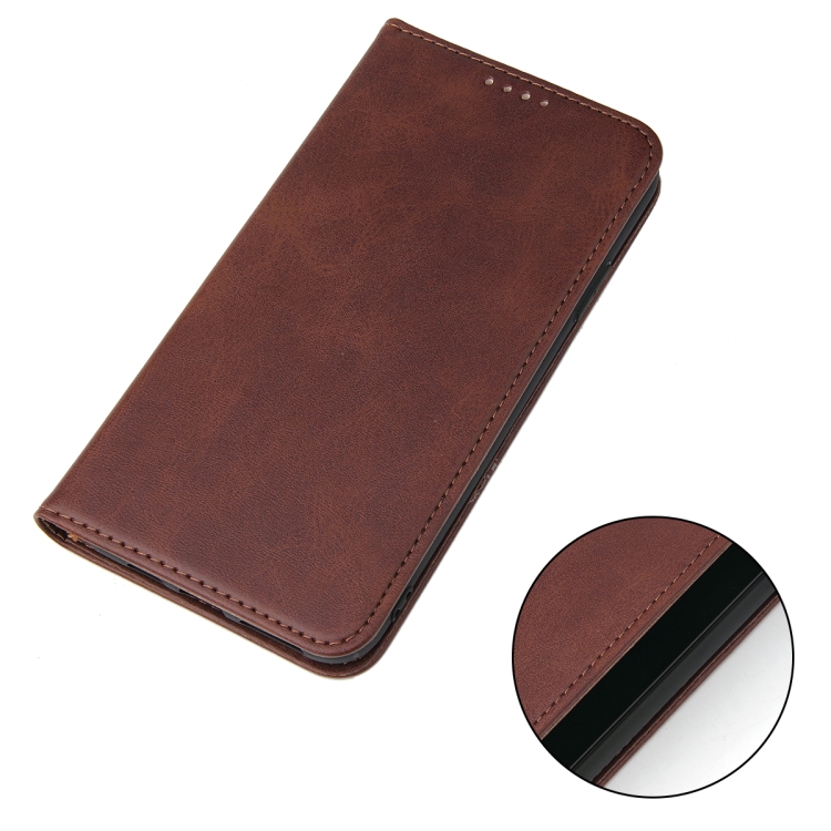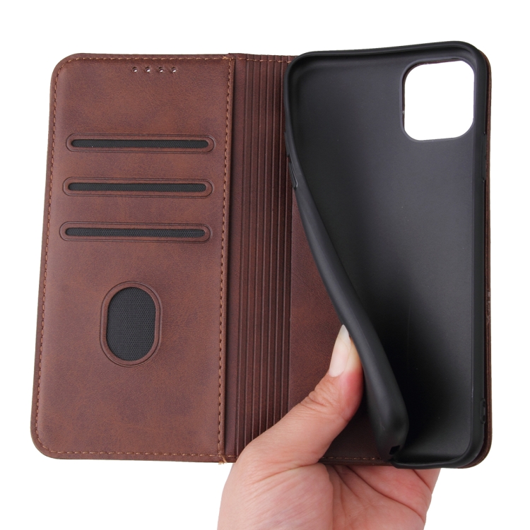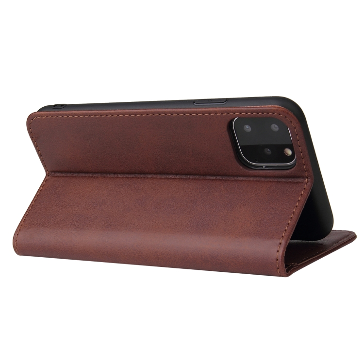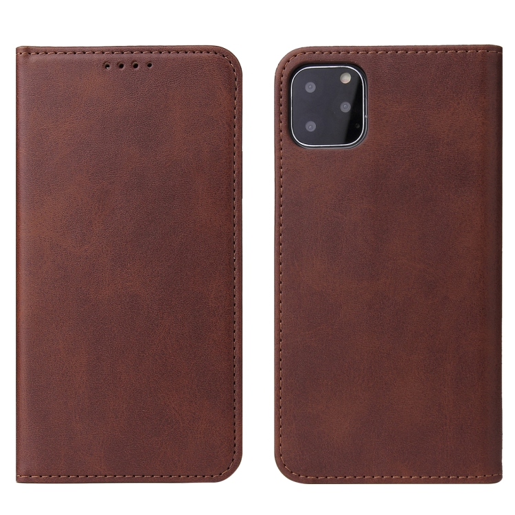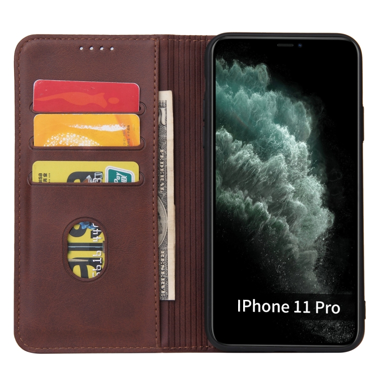 Funda para iPhone 11 Pro Max Calf Texture de Cuero con Tapa Horizontal Magnética Soporte Ranuras Tarjetas Billetera (Marrón)
