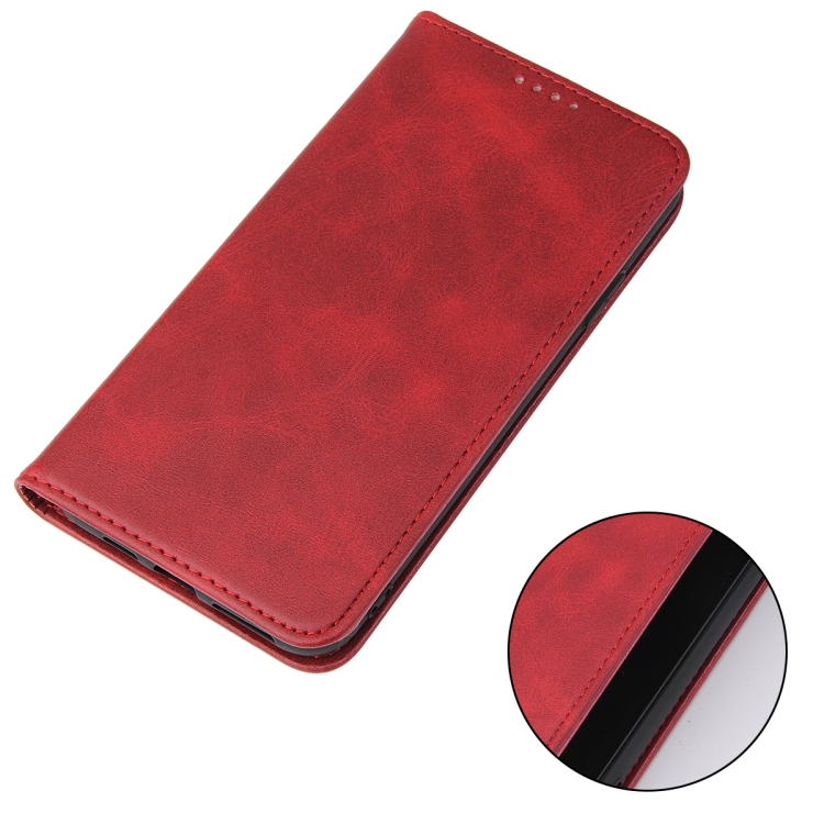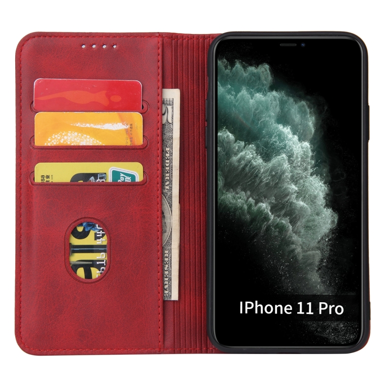 Funda de Cuero iPhone 11 Pro Max Calf Texture con Tapa Horizontal Magnética Soporte y Ranuras para Tarjetas y Billetera (Rojo)