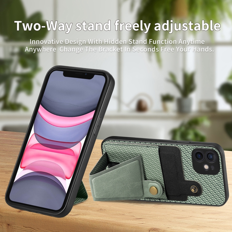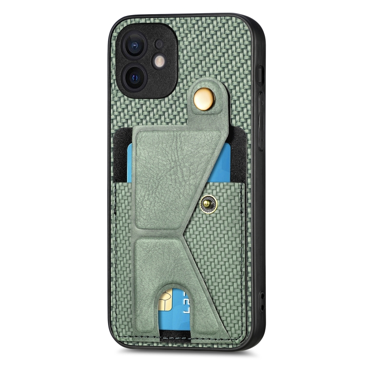 Funda para teléfono iPhone 11 Pro Max Carbon Fiber Wallet Flip Card con Soporte en Forma de K (Verde)