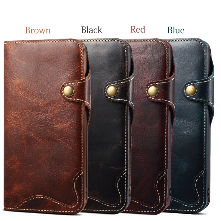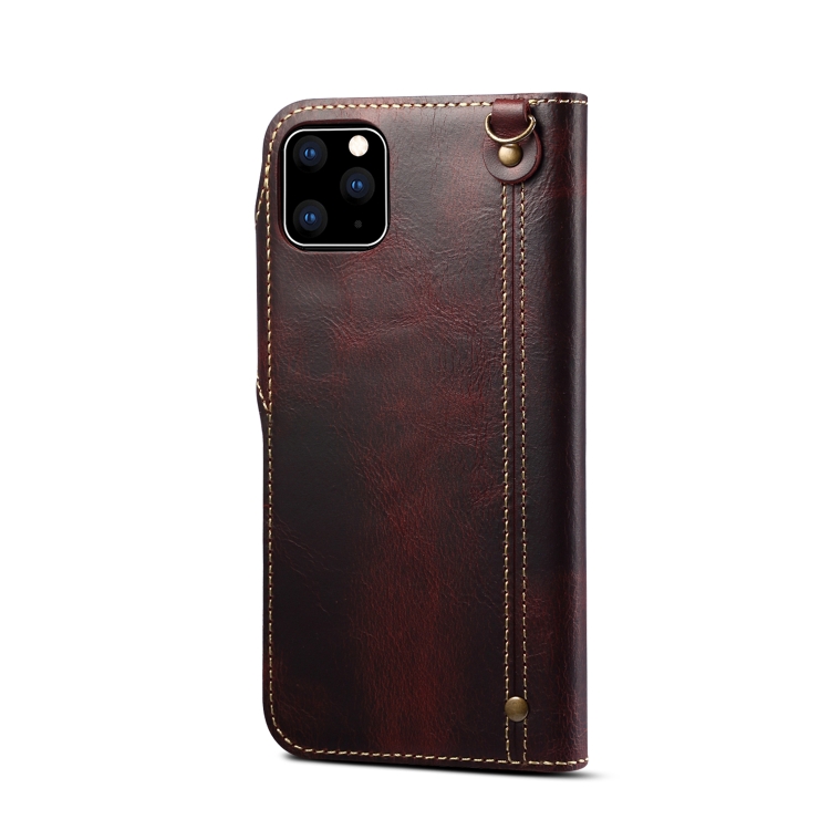 Funda para iPhone 11 Pro Max Denior Oil Wax Cowhide Botón Magnético Tapa Horizontal Ranuras para Tarjetas Billetera (Rojo Oscuro)