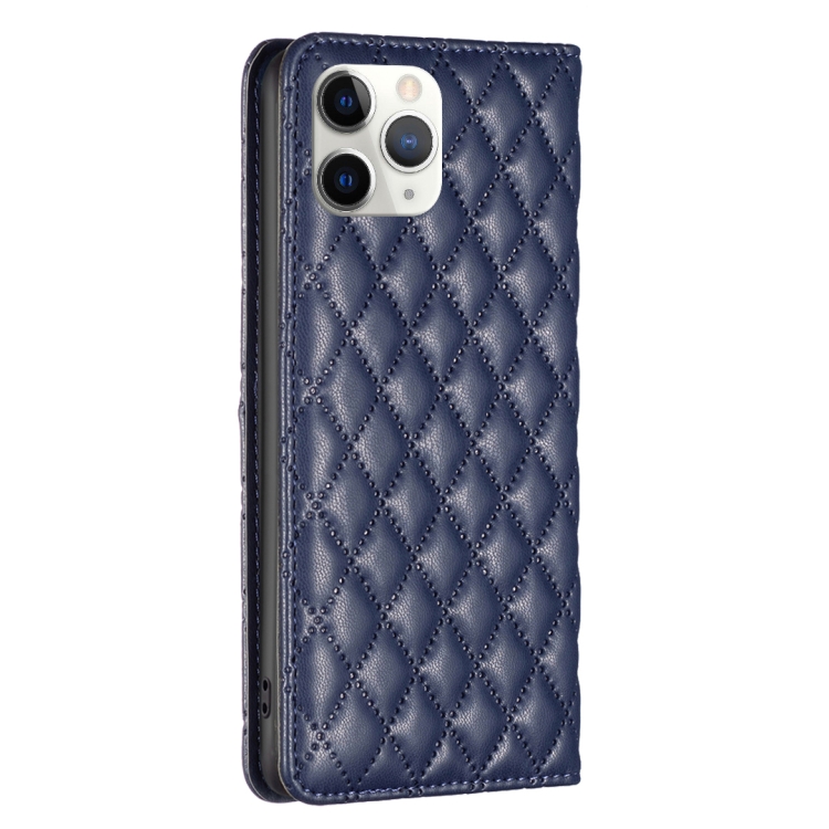 Funda de teléfono para iPhone 11 Pro Max Diamond Lattice con tapa de cuero magnético (Azul)