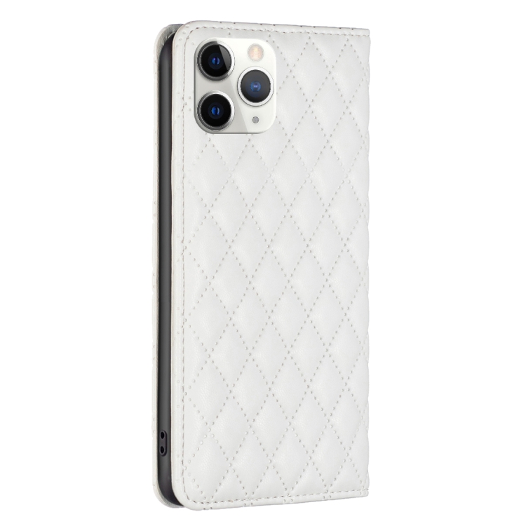 Funda de Teléfono para iPhone 11 Pro Max Diamond Lattice con Tapa de Cuero Magnético (Blanco)