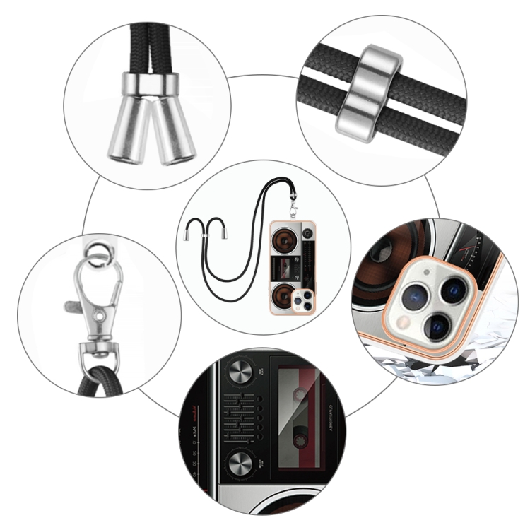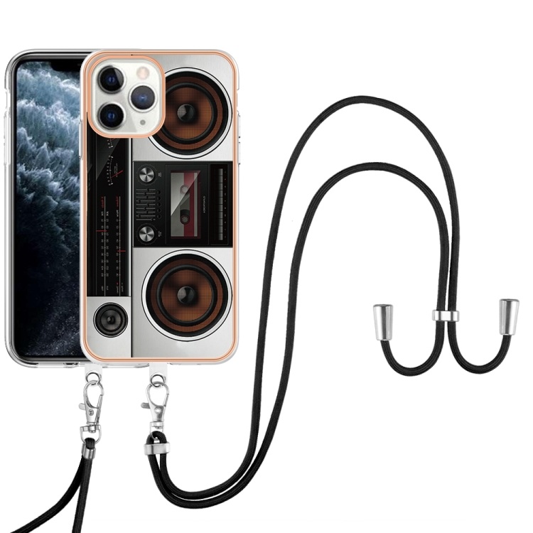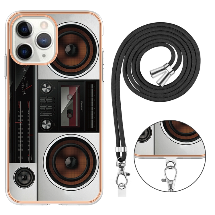 Estuche para Teléfono iPhone 11 Pro Max Imd Doble Cara con Galvanoplastia y Cordón (Radio Retro)