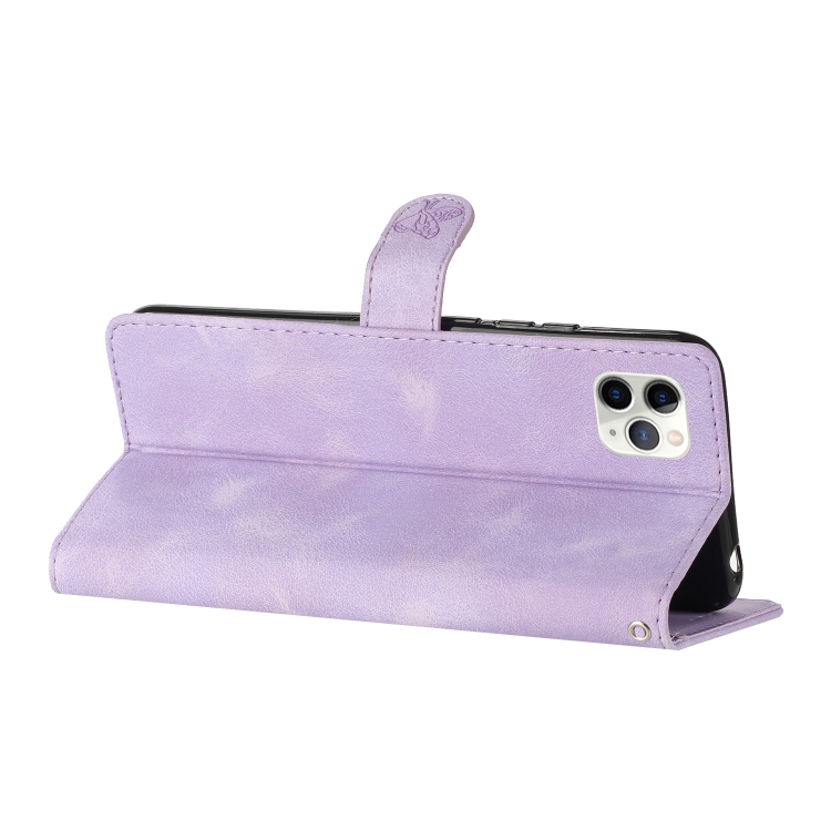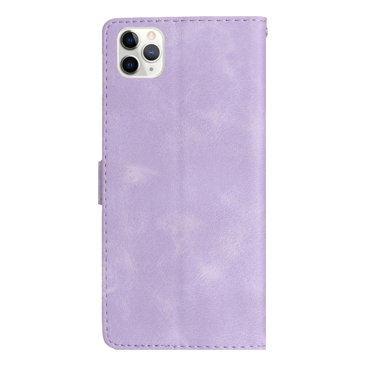 Funda de Teléfono iPhone 11 Pro Max Cuero Estampado Flores En Relieve (Púrpura)