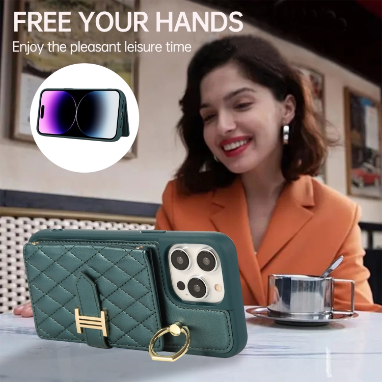 Funda para iPhone 11 Pro Max Horizontal Card Bag Ring Holder con Doble Cordón (Verde Oscuro)