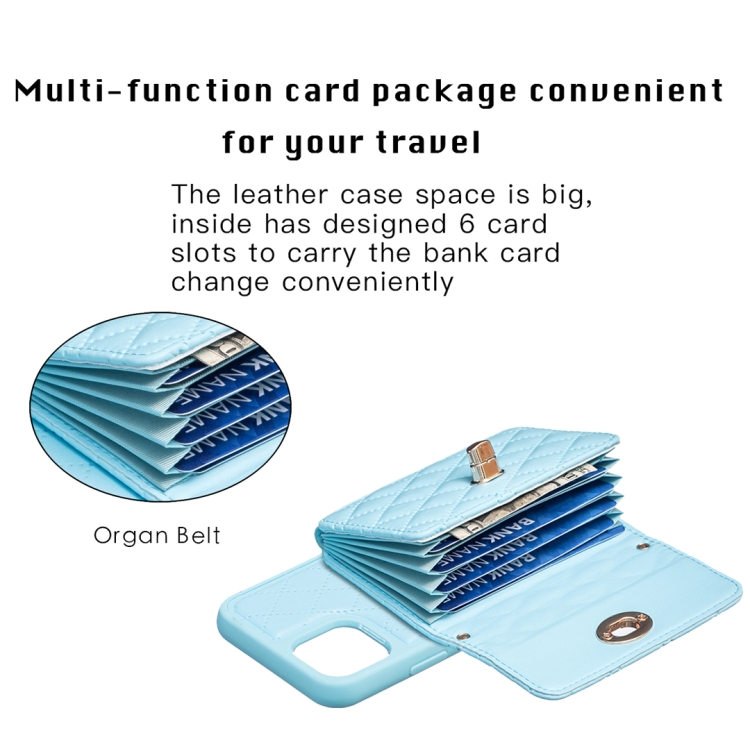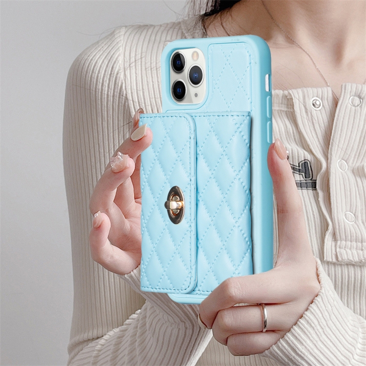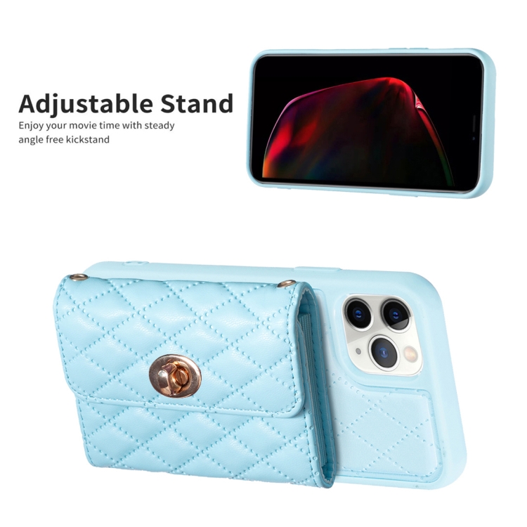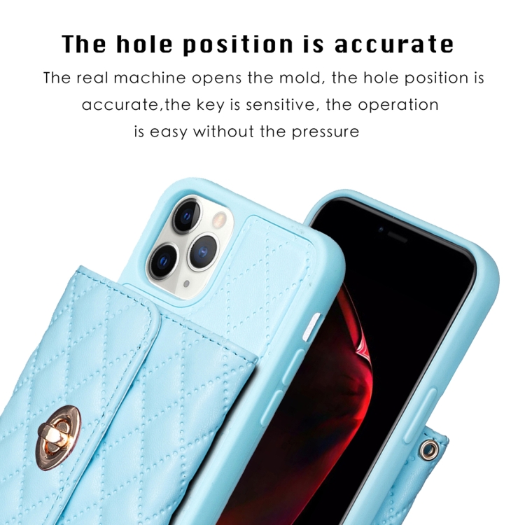 Pour iPhone 11 Pro Max Boucle en métal horizontale Portefeuille Étui de téléphone en cuir rhombique (Bleu)