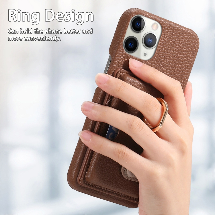 Funda para Teléfono iPhone 11 Pro Max Litchi Leather Oil Edge Ring Card Back (Marrón)