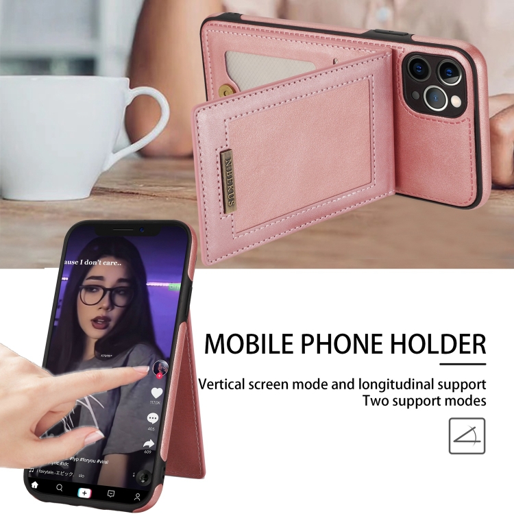 Estuche para Teléfono N.Bekus iPhone 11 Pro Max Rfid Ranura para Tarjeta Tapa Vertical (Oro Rosa)