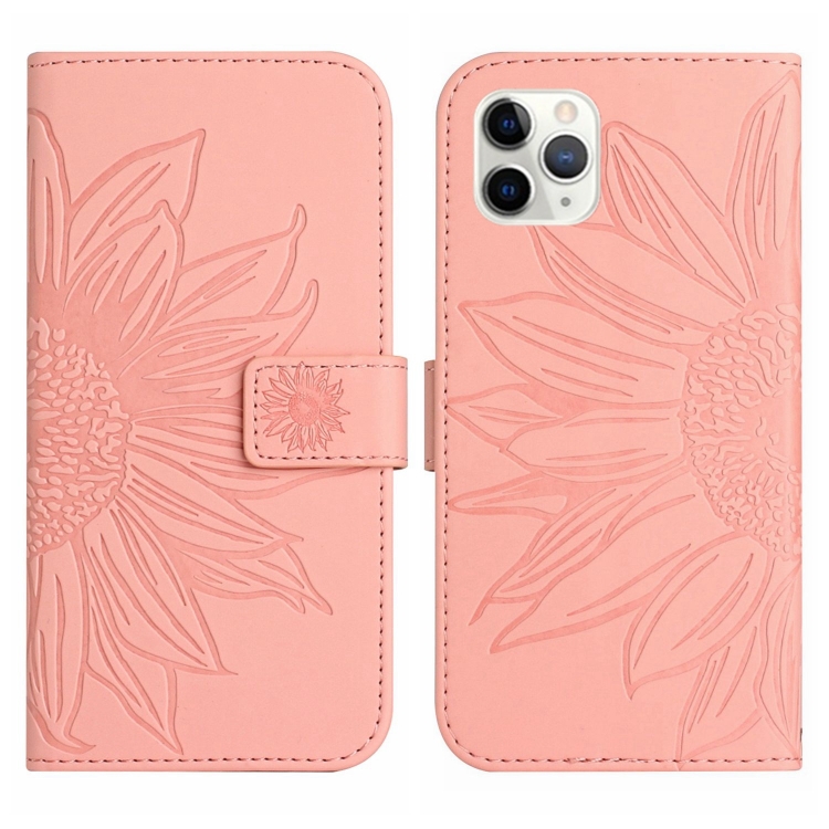 Funda Flip de Cuero Para iPhone 11 Pro Max Skin Feel Sun Flower Pattern con Cordón (Rosa)