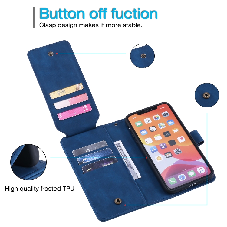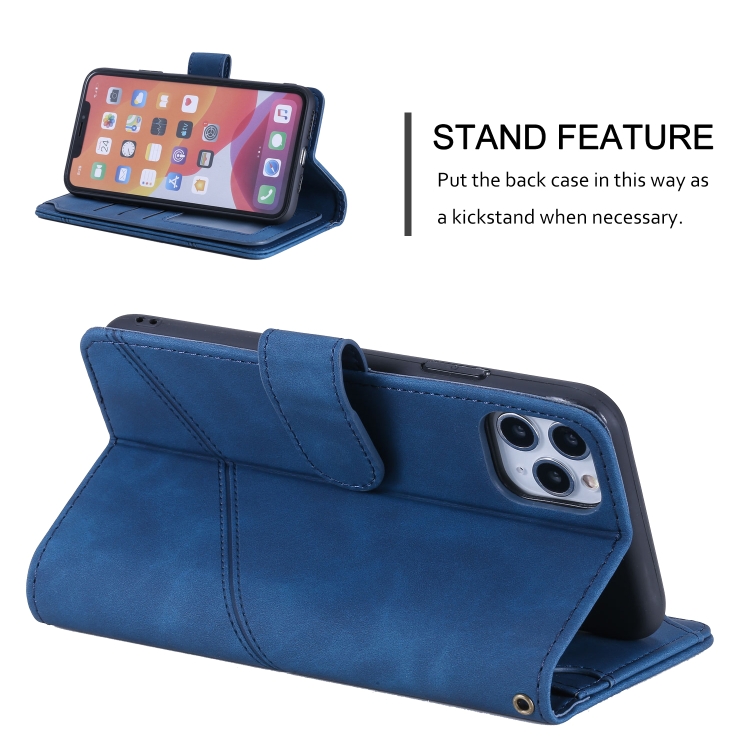 Funda para iPhone 11 Pro Skin Feel Business de Cuero PU con Tapa Horizontal Soporte Ranuras Tarjetas Billetera Cordón Marco de Fotos (Azul)