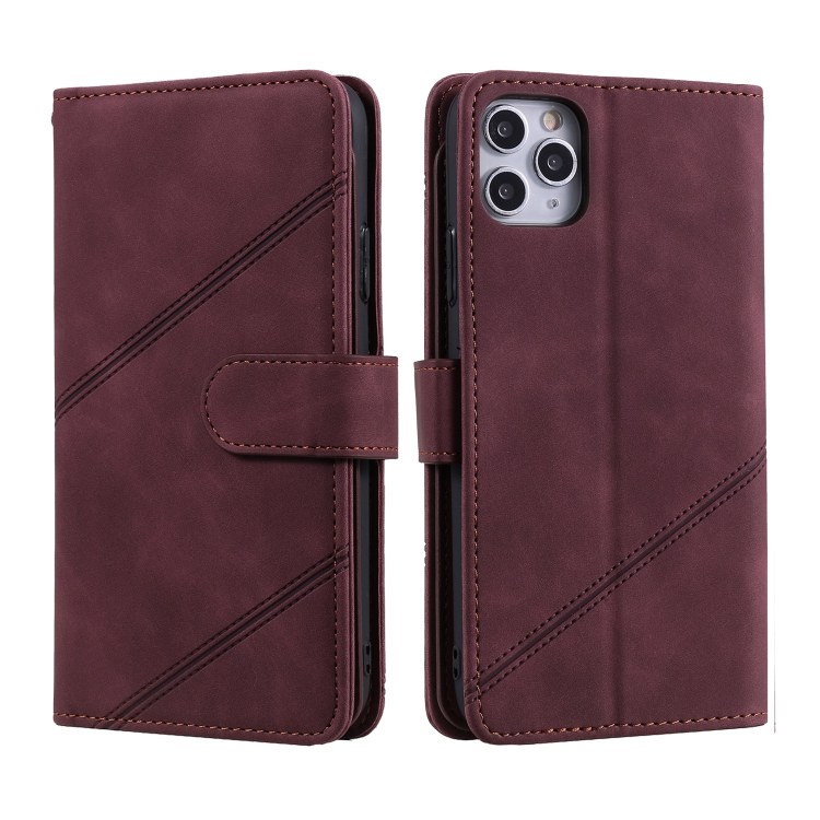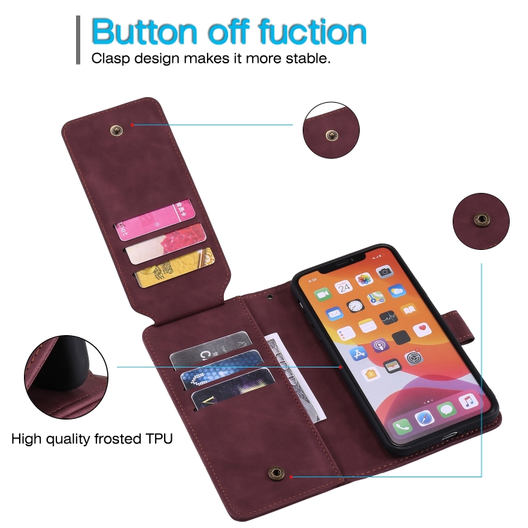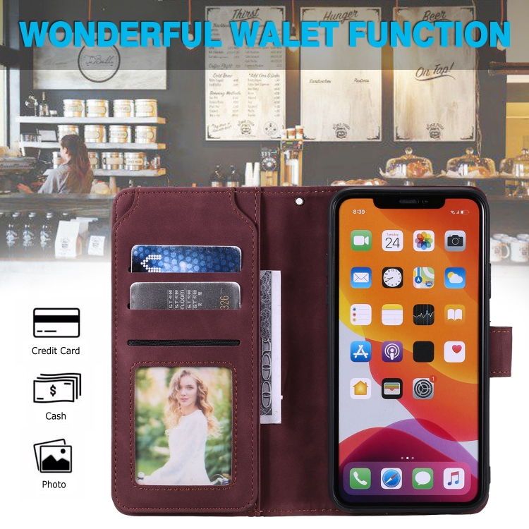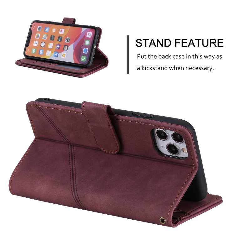 Funda para iPhone 11 Pro Skin Feel Business Cuero de Pu Tapa Horizontal Soporte Tarjetas Billetera Cordón Marco Fotos (Rojo)