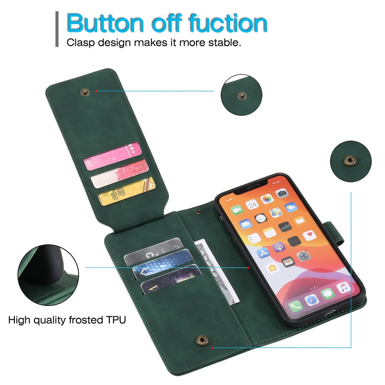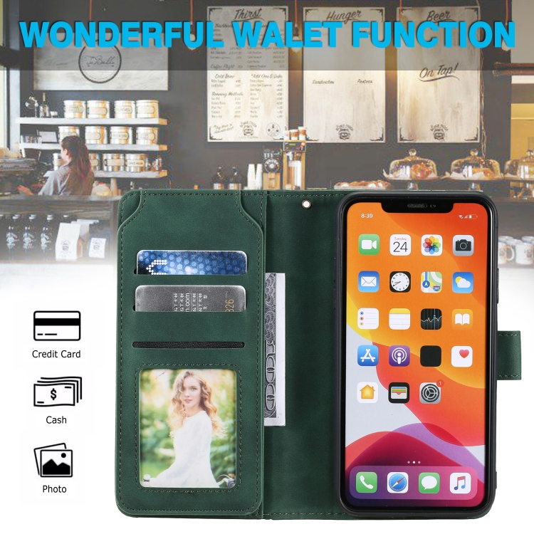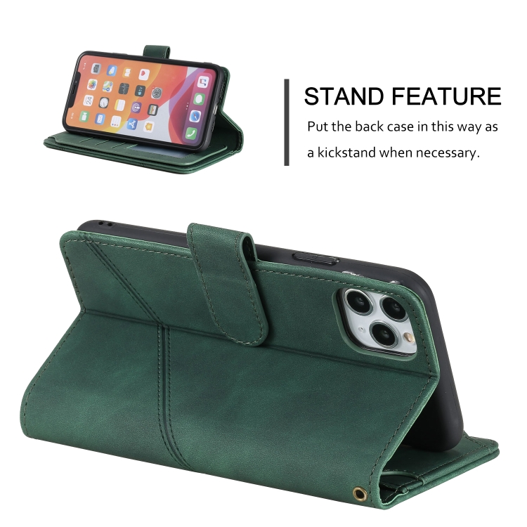 Funda para iPhone 11 Pro Skin Feel Business Cuero de Pu con Tapa Horizontal Soporte Ranuras Tarjetas Billetera Cordón Marco Fotos (Verde)