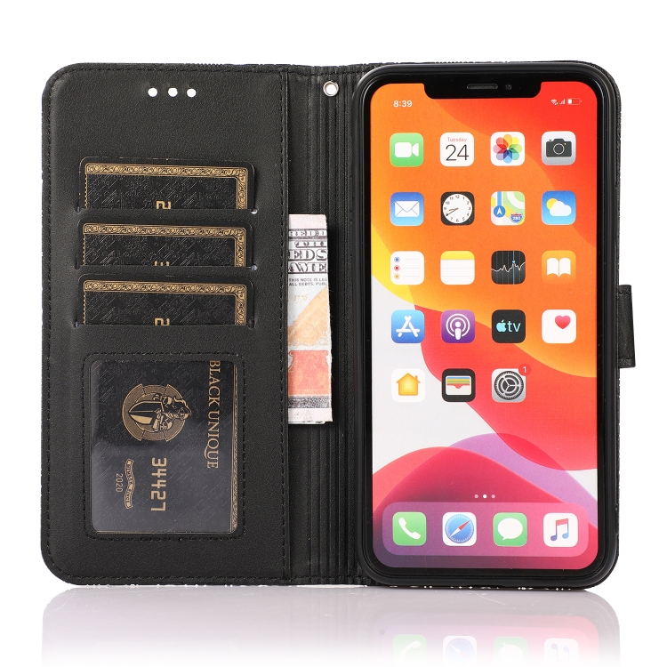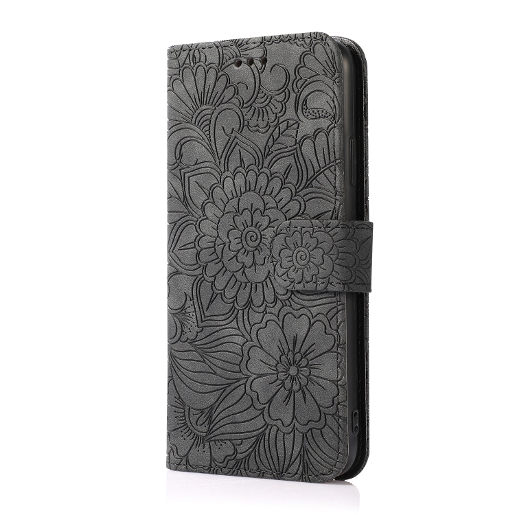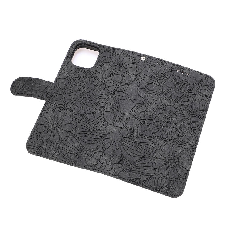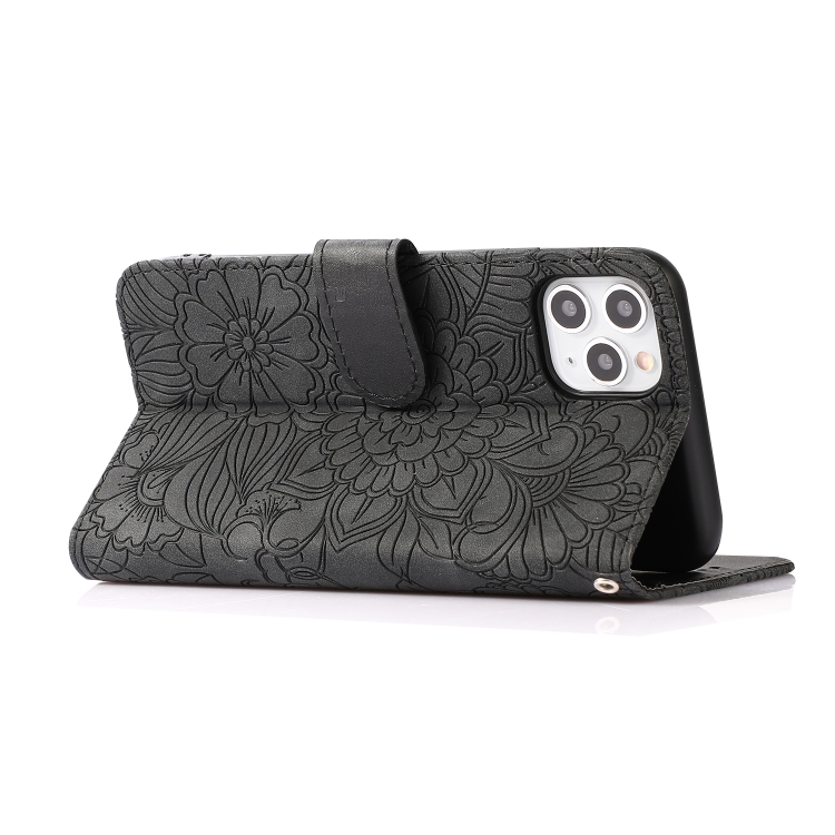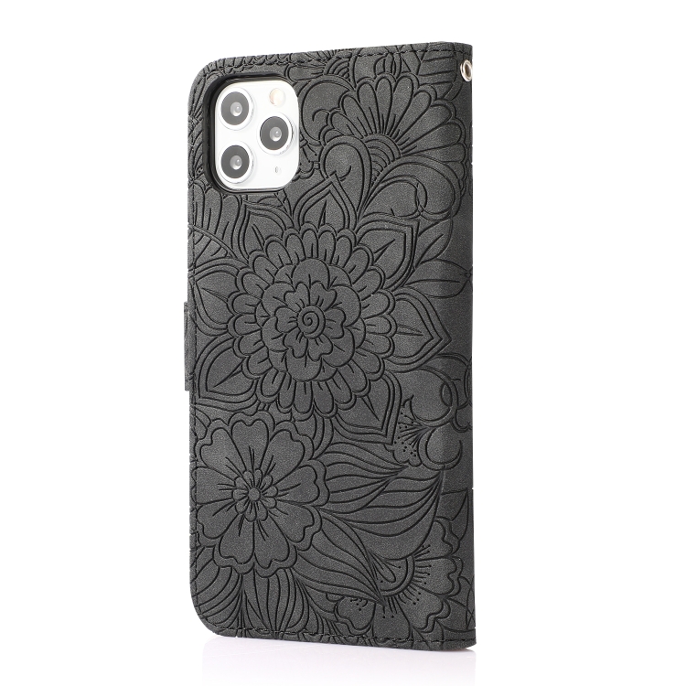 Funda de Cuero para iPhone 11 Pro Skin Feel En Relieve Sunflower con Tapa Horizontal, Soporte, Ranuras para Tarjetas y Cordón (Negro)
