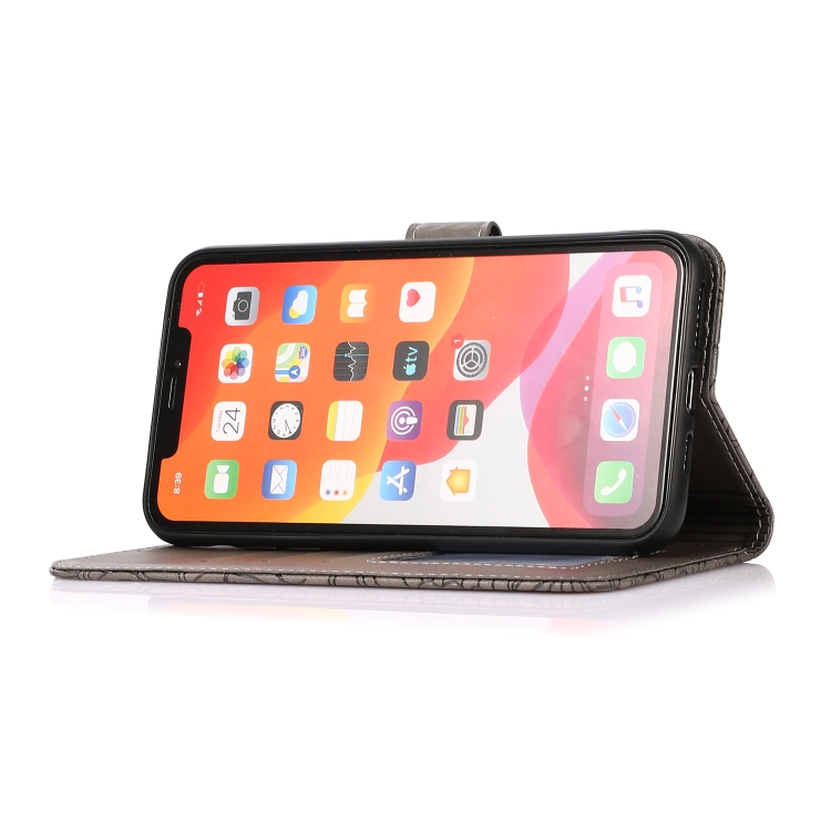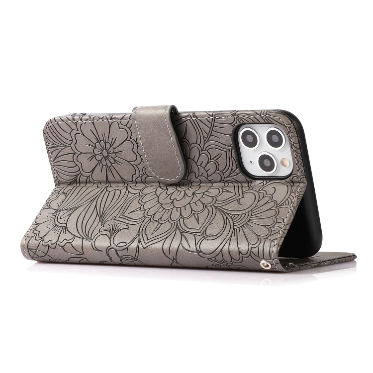 Funda para iPhone 11 Pro Skin Feel Relieve Sunflower Cuero Tapa Horizontal Soporte Ranuras Tarjetas Billetera Cordón (Gris)