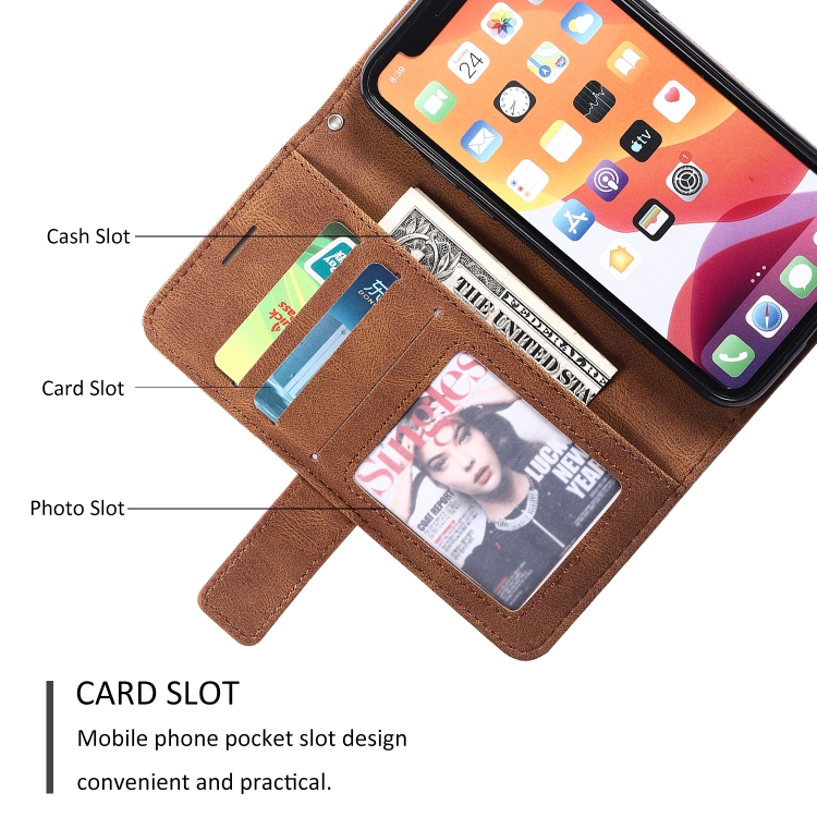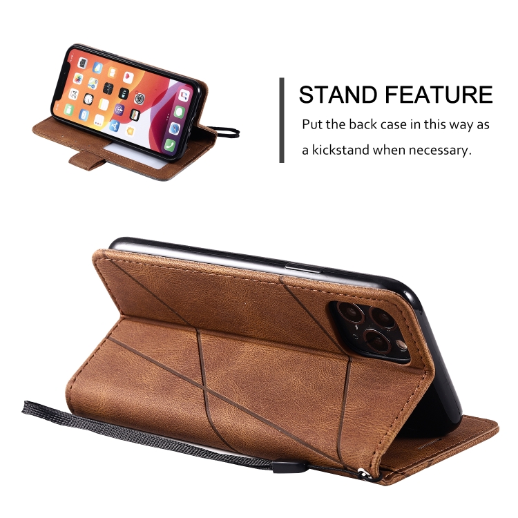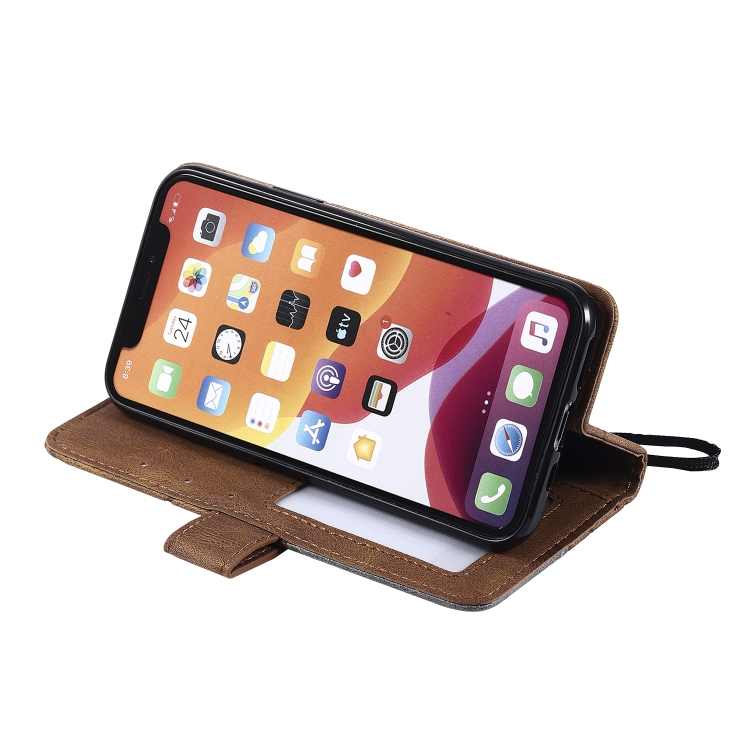 Funda de Cuero iPhone 11 Pro Skin Feel Splicing con Tapa Horizontal, Soporte, Ranuras para Tarjetas y Billetera (Marrón)