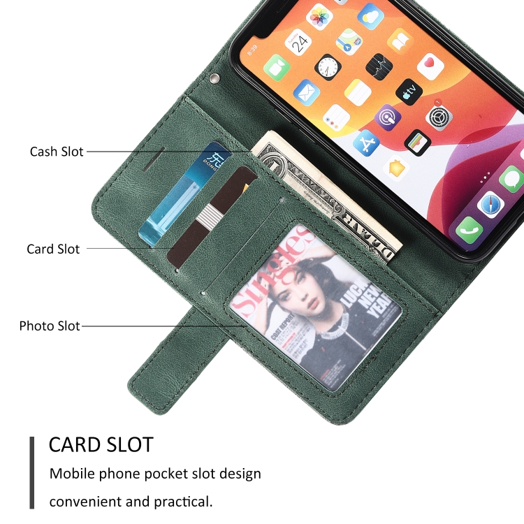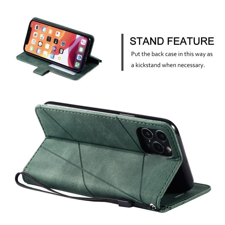 Funda de Cuero para iPhone 11 Pro Skin Feel Splicing con Tapa Horizontal, Soporte, Ranuras para Tarjetas, Billetera y Marco de Fotos (Verde)