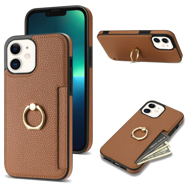 Funda Trasera para iPhone 11 Ring Card Litchi Cuero (Marrón)