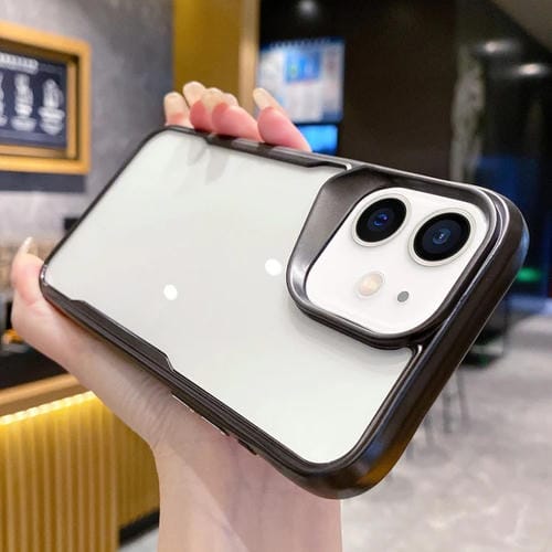 Caja de teléfono híbrida para iPhone 12 con marco de TPU galvanizado (Negro)