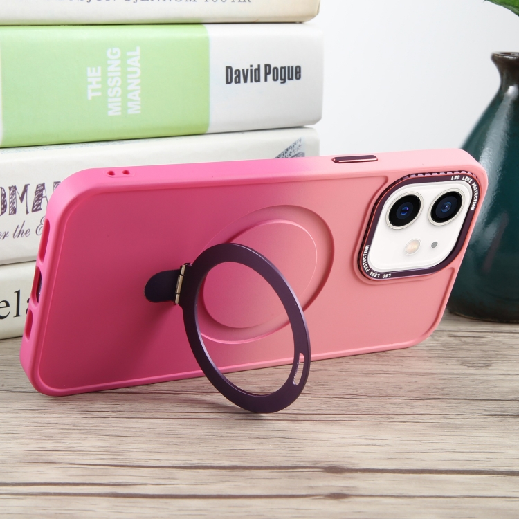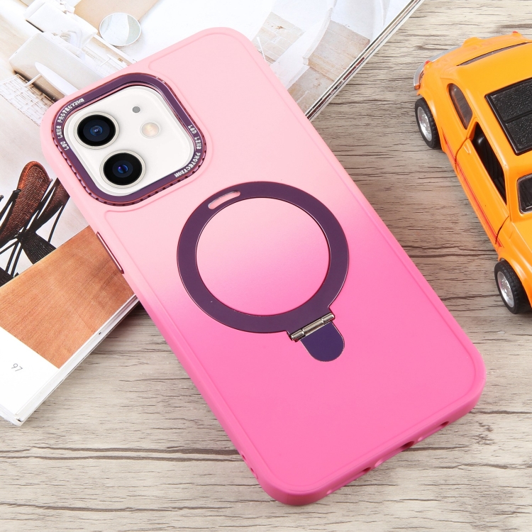 Funda para Teléfono iPhone 12 Soporte Magsafe Silicona Líquida Degradado (Rosa Rojo)