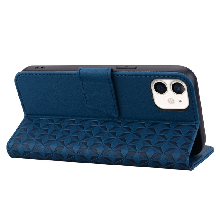 Funda de Cuero para iPhone 12 Mini Business con Hebilla de Diamante y Cordón (Azul Real)