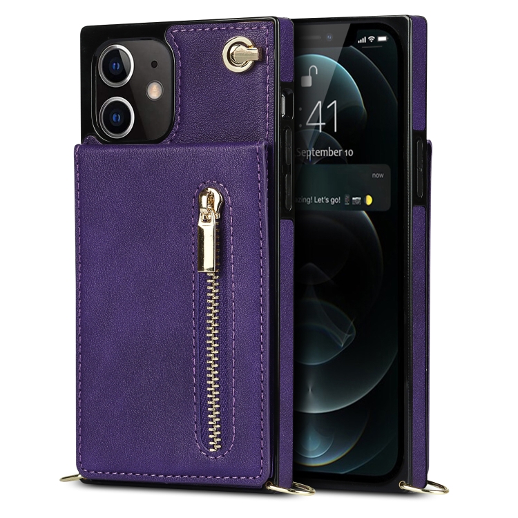 Funda Trasera para iPhone 12 Mini Cross-Body Zipper Square TPU + PU con Soporte, Ranuras para Tarjetas y Billetera (Púrpura)