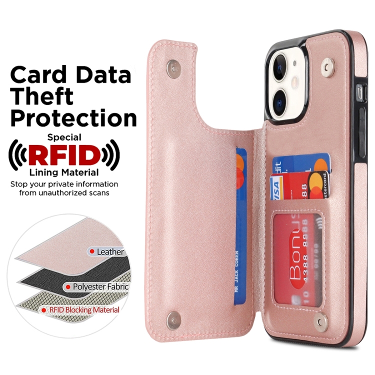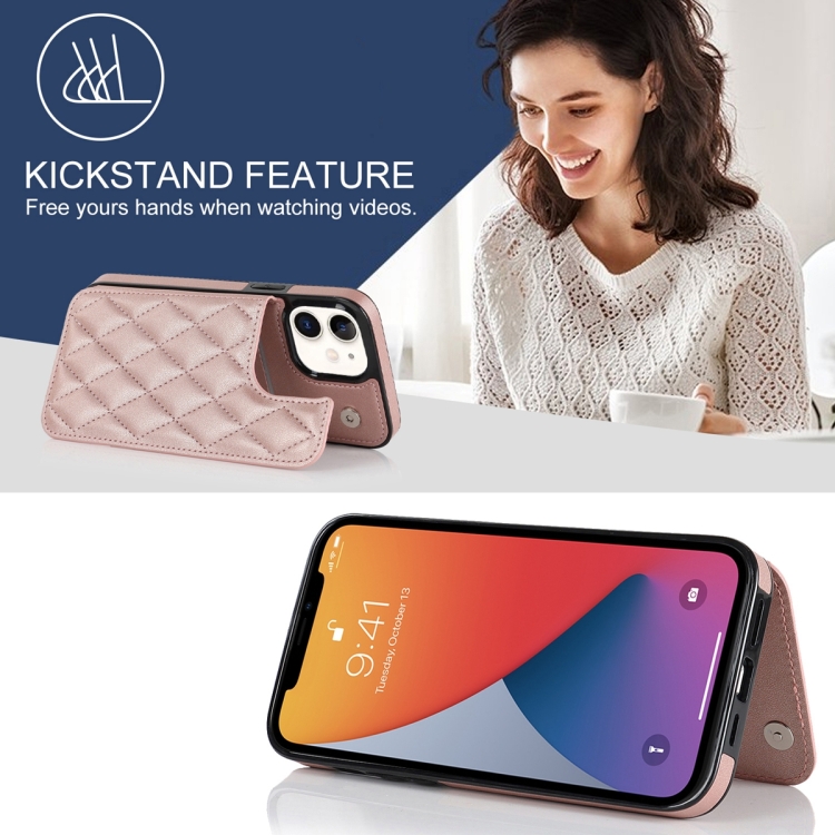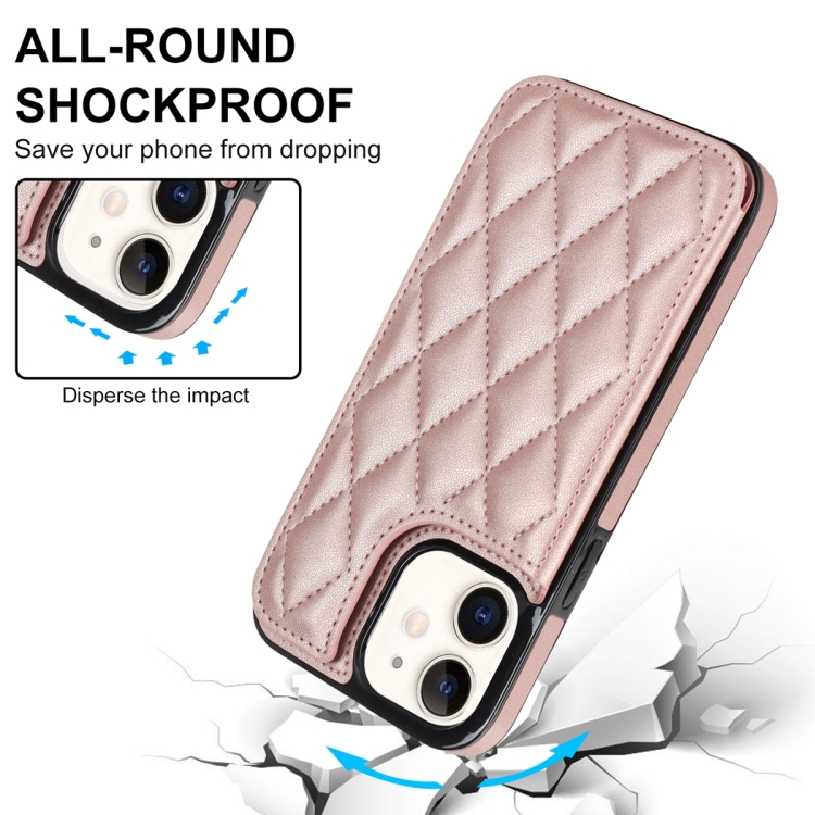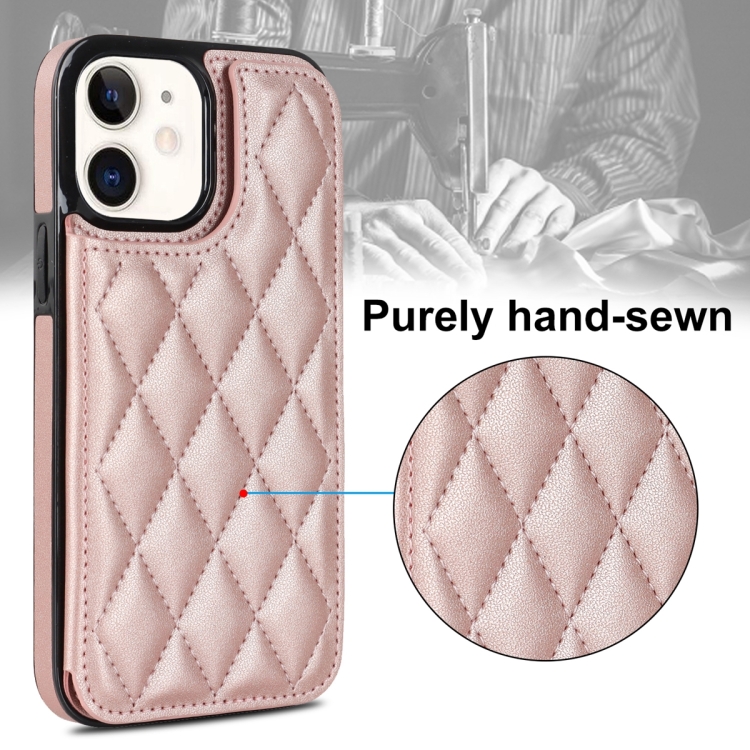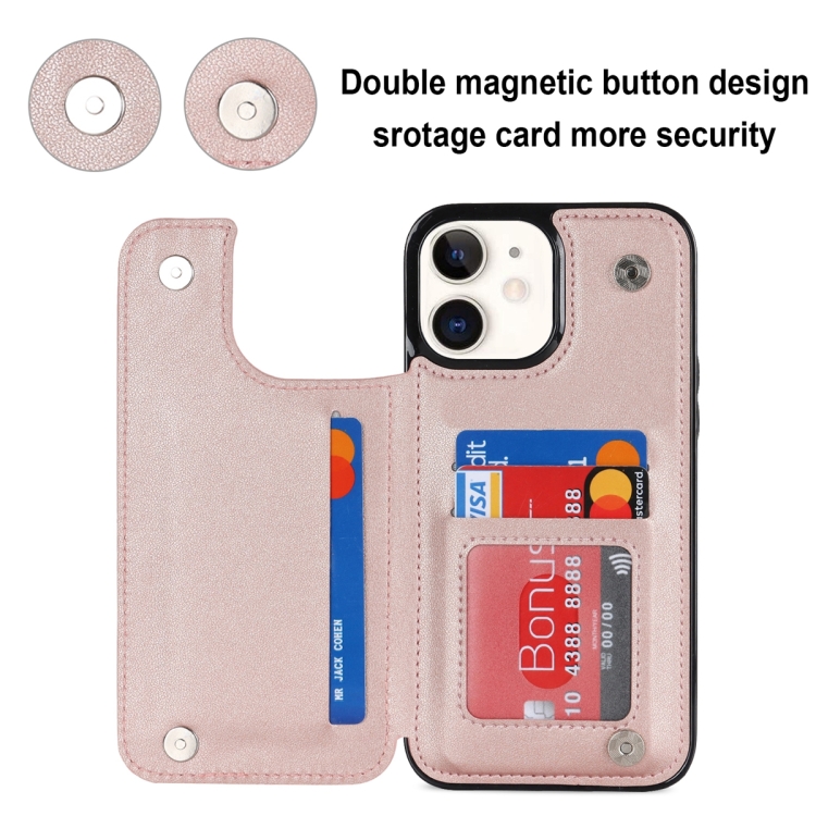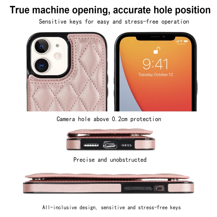Funda de Teléfono iPhone 12 Mini Cuero Pu Rombal con Doble Hebilla (Oro Rosa)