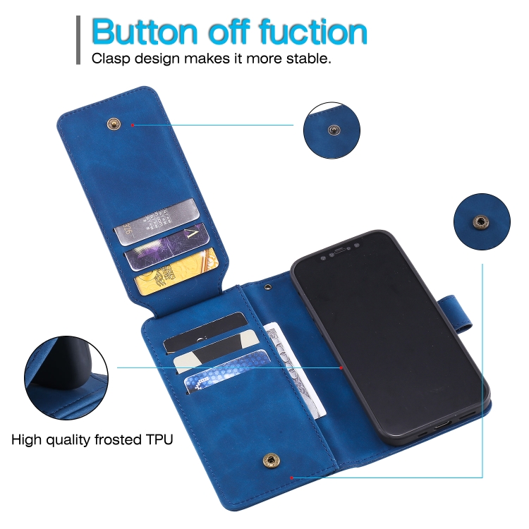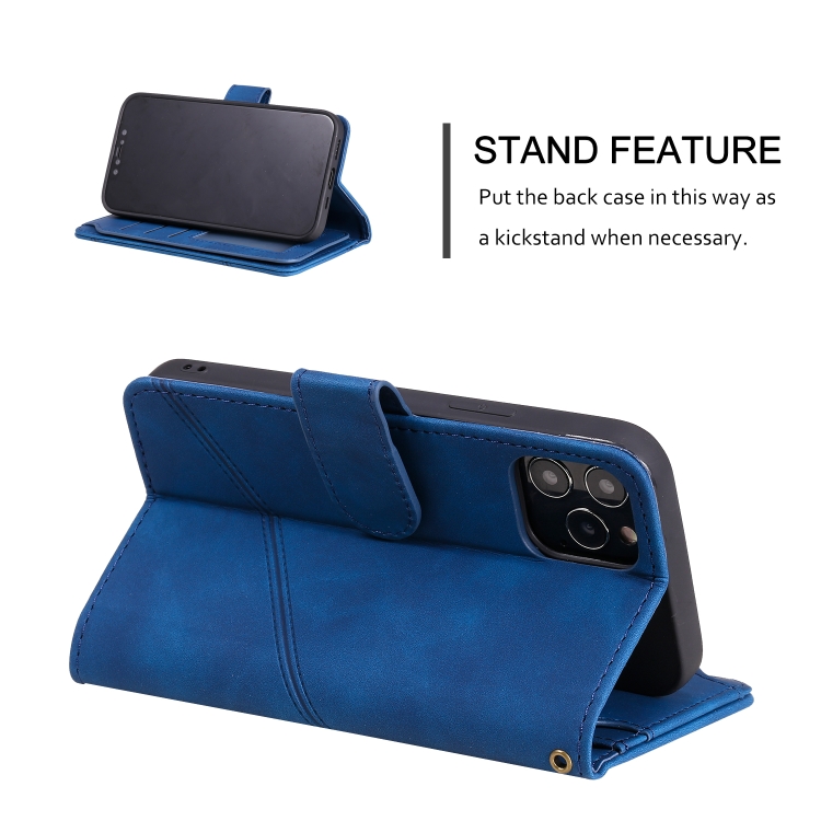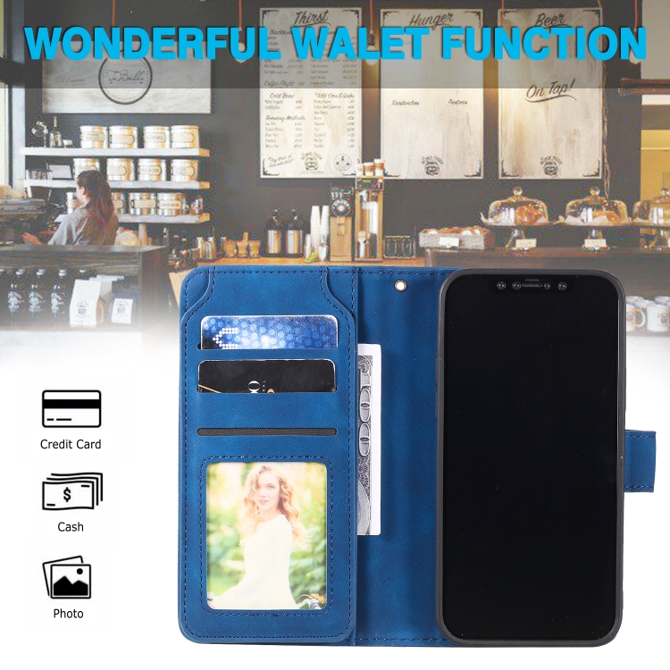 Funda para iPhone 12 Mini Skin Feel Business de Cuero PU con Tapa Horizontal, Soporte, Ranuras y Billetera (Azul)