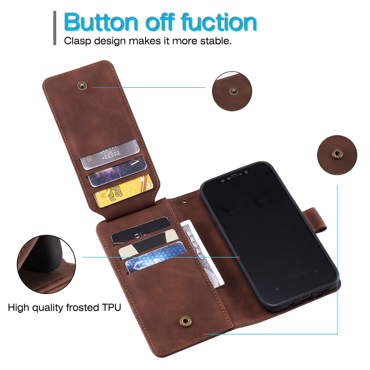 Funda para iPhone 12 Mini Skin Feel Business de Cuero PU con Tapa Horizontal, Soporte, Ranuras para Tarjetas, Billetera, Cordón y Marco de Fotos (Marrón)