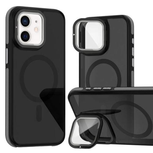 Estuche para Teléfono iPhone 12 Pro / 12 Magsafe con Película de Lente y Soporte Doble Color (Gris)