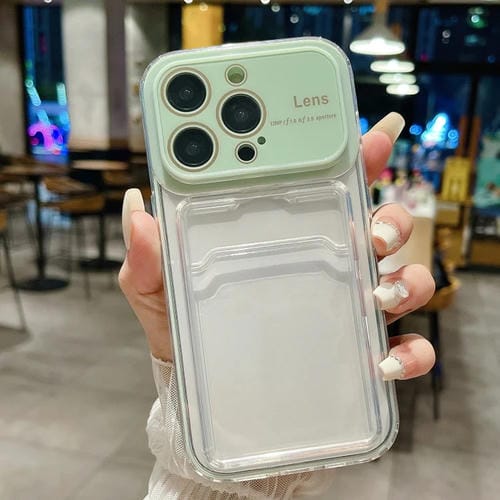 Caja de Teléfono Híbrida TPU PC para iPhone 12 Pro con Ventana Grande y Ranura para Tarjeta (Verde)